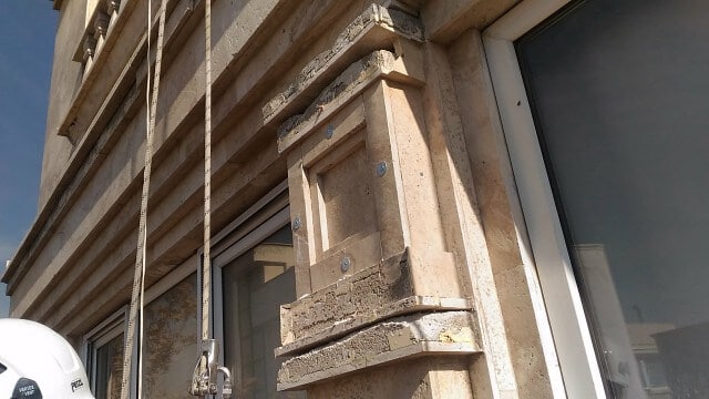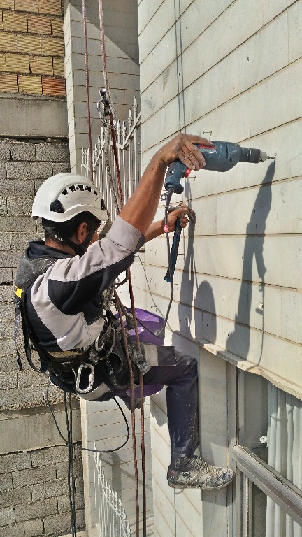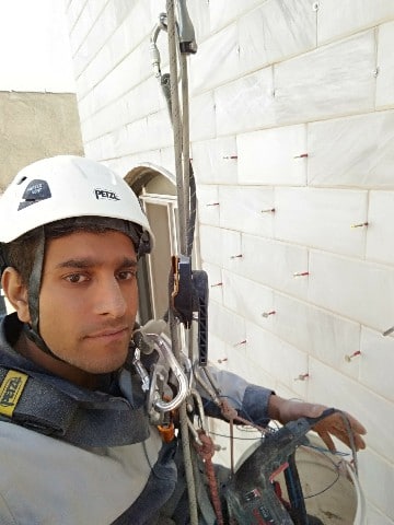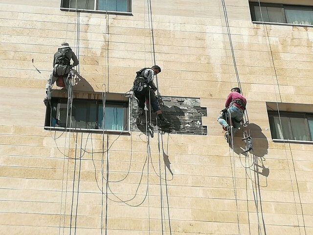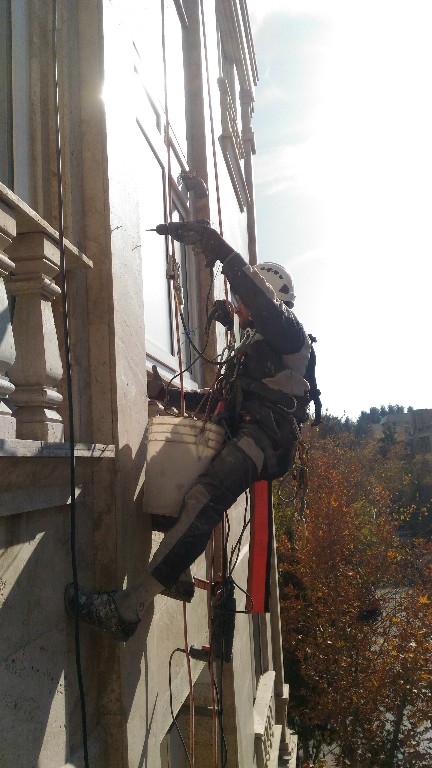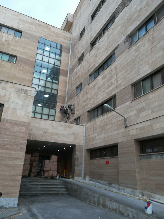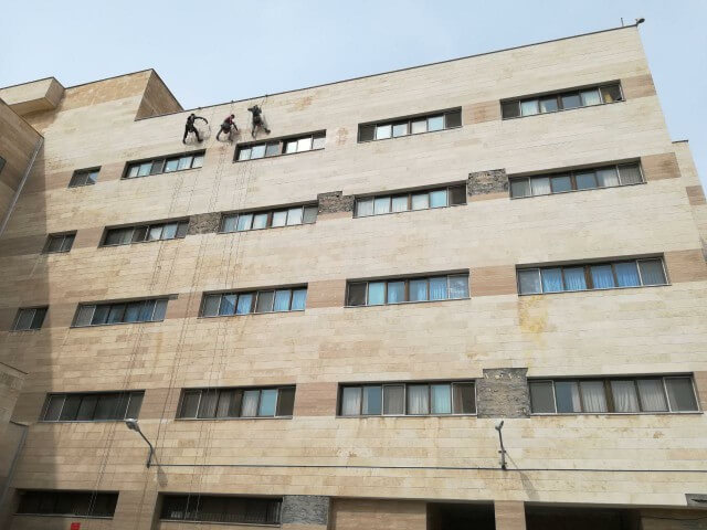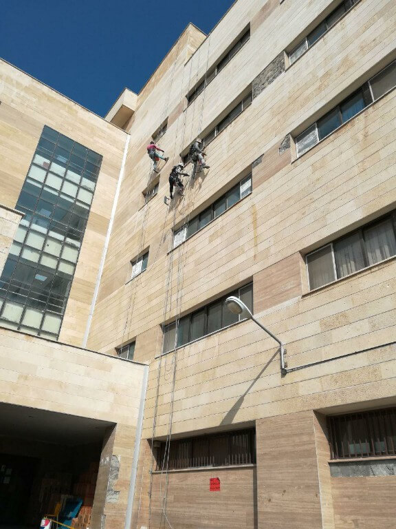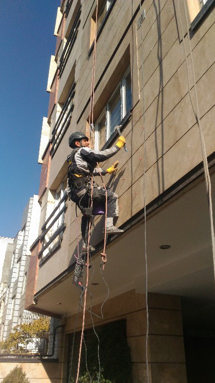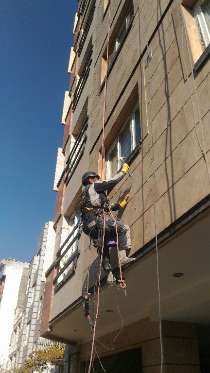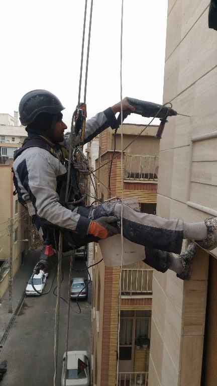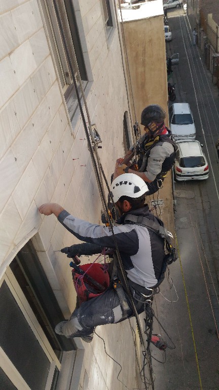 ترمیم سنگ نمای ساختمان در تهران و کرج بدون داربست و با طناب